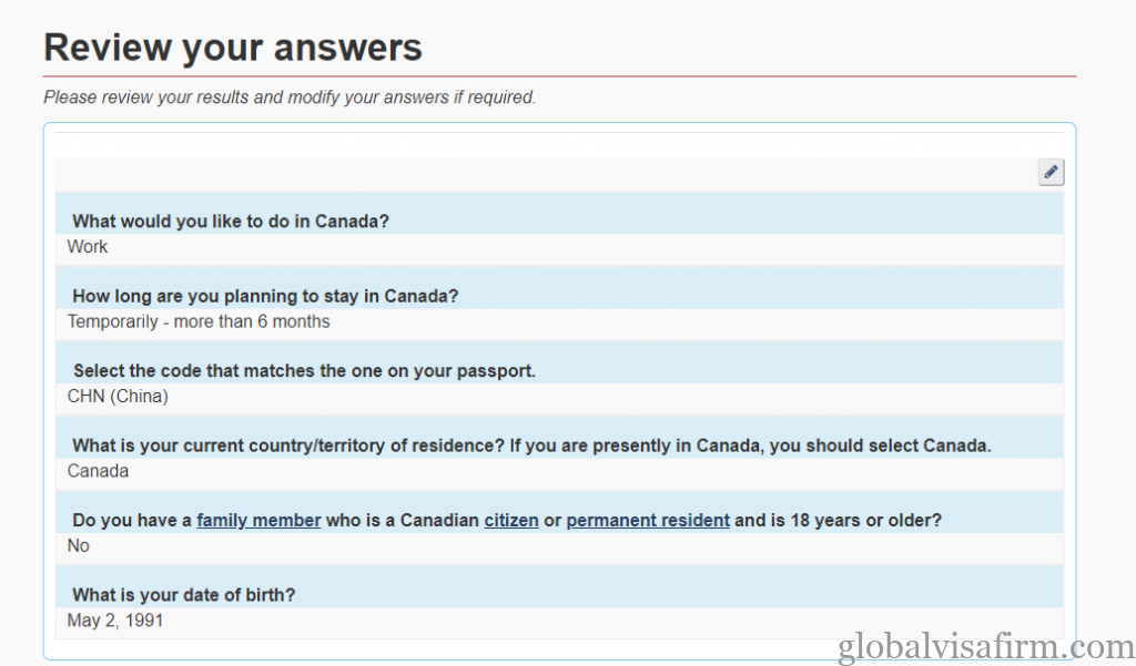 第四步:按照实际情况填写问卷。按照图片,填写你的个人情况(来加拿大工作,暂住超过6个月,中国护照号,有无家人是加拿大公民或有枫叶卡,出生日期)。